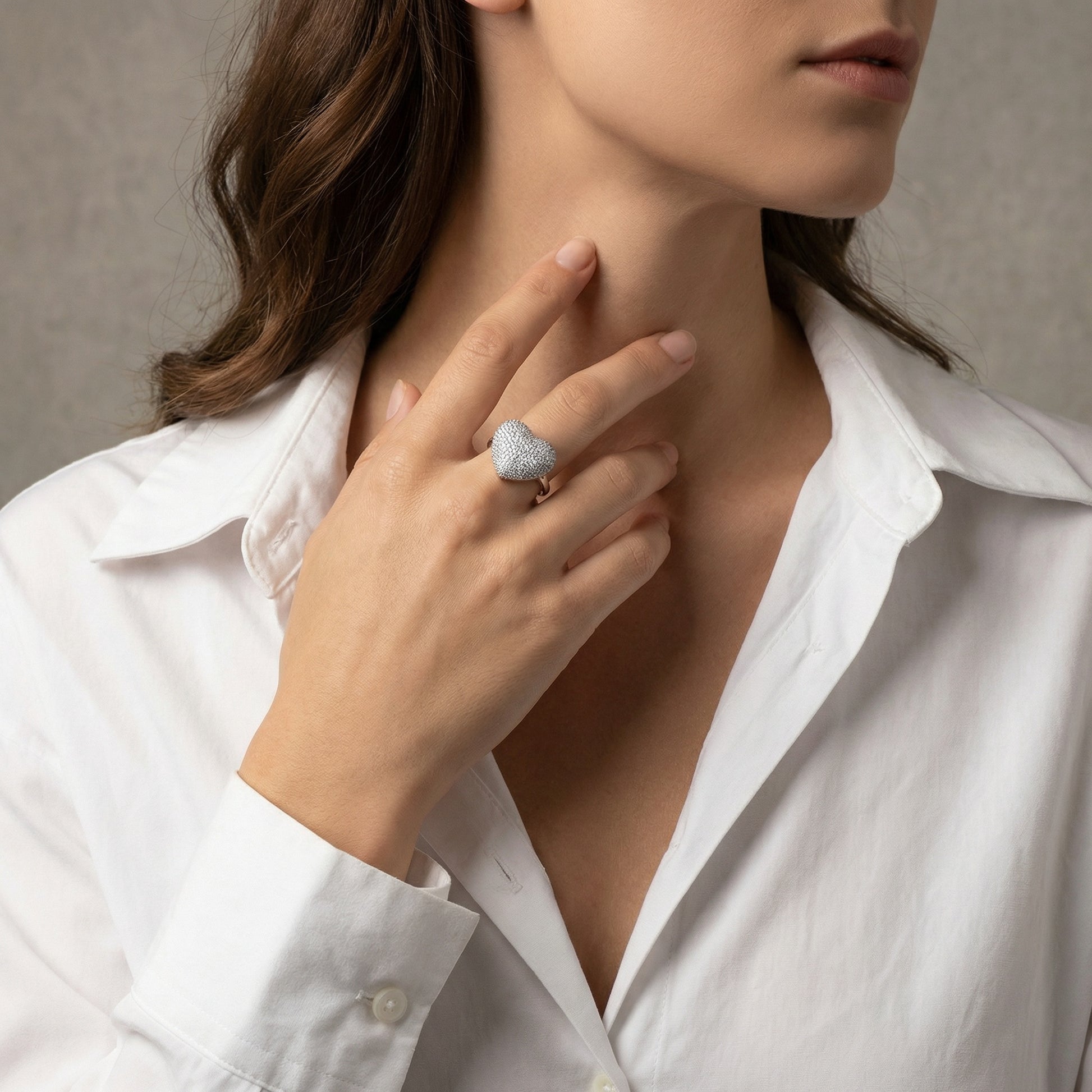La misura regolabile lo rende comodo e adattabile a qualsiasi dito, perfetto sia per un look quotidiano che per un’occasione speciale. Un gioiello che esprime amore, luce e femminilità.