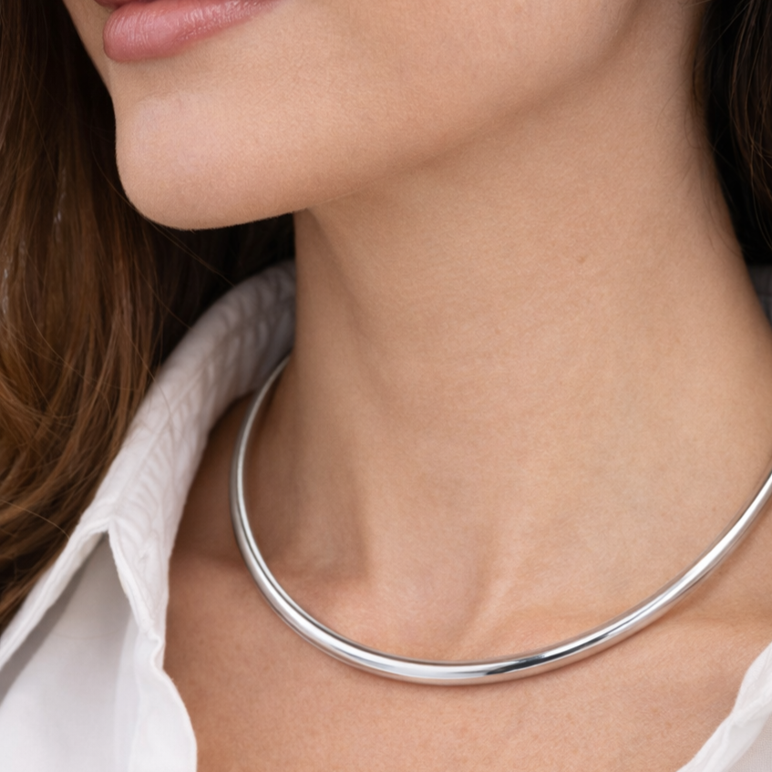 Realizzata con materiali resistenti e curata nei minimi dettagli, la collana presenta uno spessore massimo di 8 mm, una larghezza interna di 11,5 cm e un'apertura di 7,5 cm, assicurando comfort e vestibilità perfetta. Una scelta contemporanea che unisce semplicità e stile.
