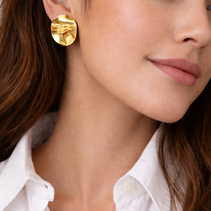 Originali e d’impatto, gli orecchini Iris si distinguono per il loro design scultoreo e contemporaneo. La superficie lucida e irregolare crea riflessi dinamici che catturano la luce con eleganza, donando movimento e carattere al viso.