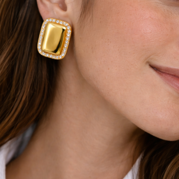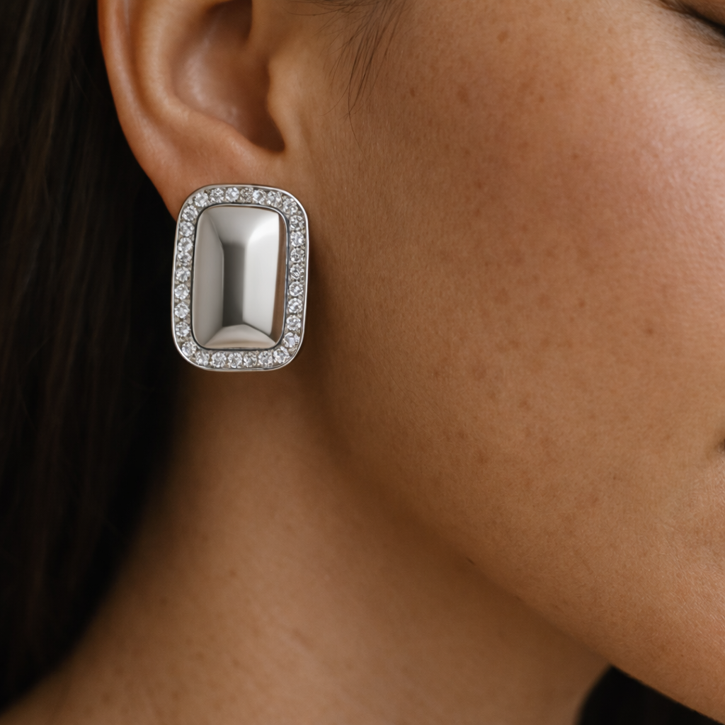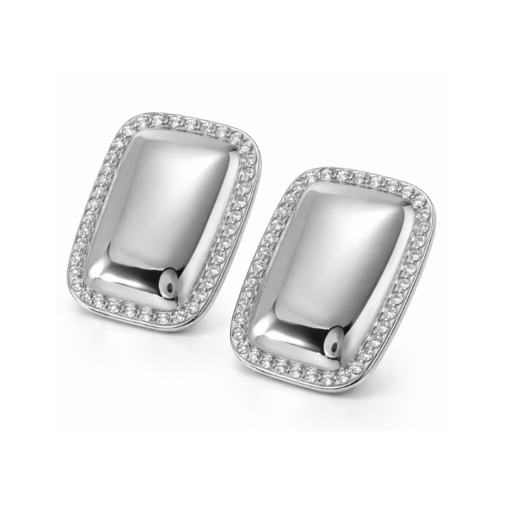 Eleganti e moderni, gli orecchini Jasmine si distinguono per il loro design bombato impreziosito da una cornice di luminosi zirconi bianchi, che dona carattere e raffinatezza. La superficie lucida esalta la brillantezza dei dettagli, rendendo questi orecchini un accessorio sofisticato e versatile.