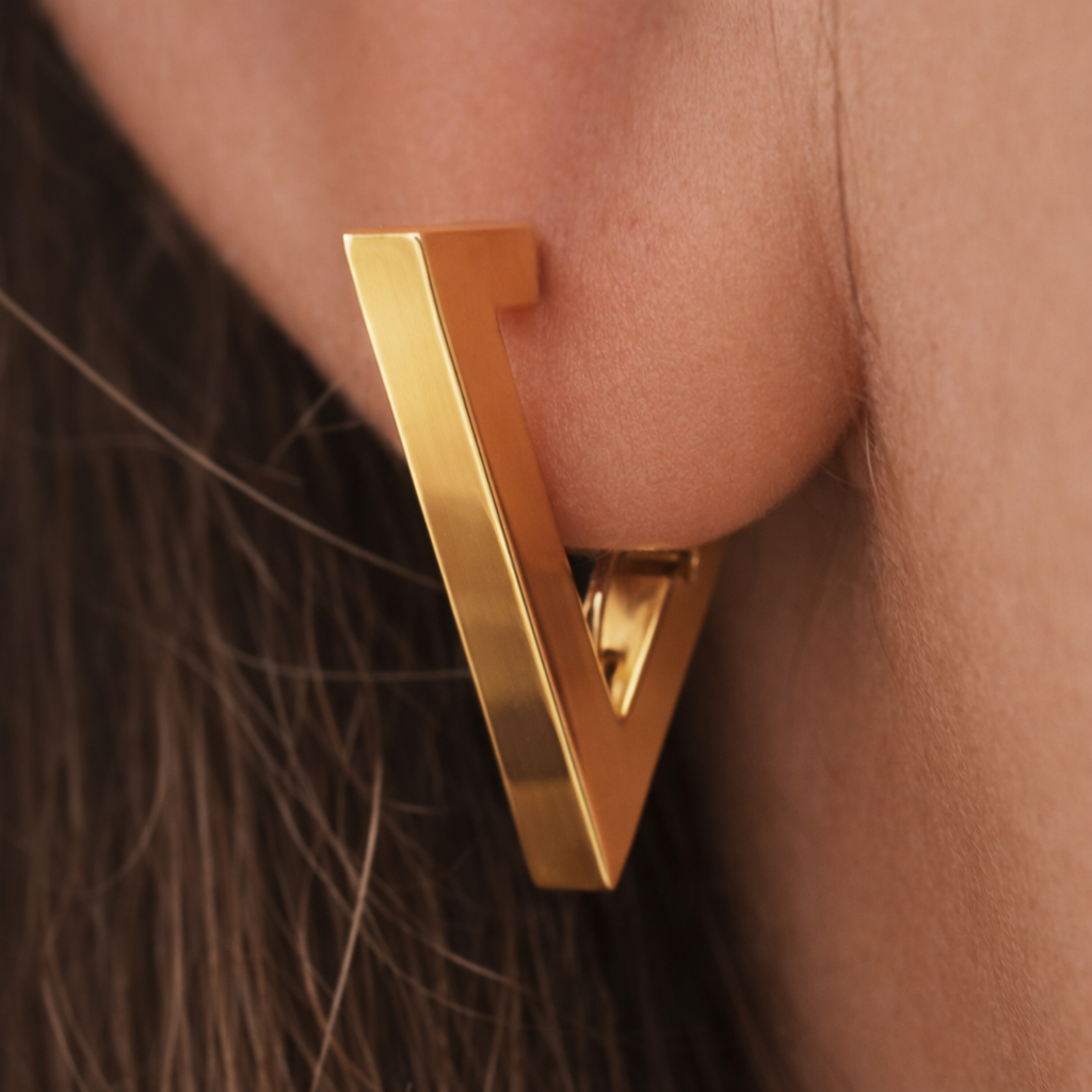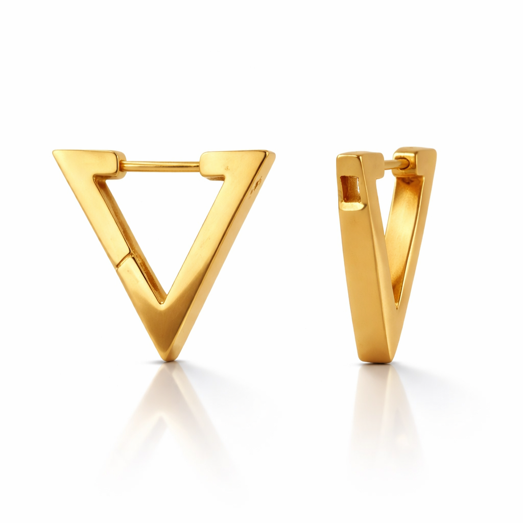 Eleva il tuo stile con questi orecchini geometrici in acciaio inossidabile, placcati in oro. La forma elegante a triangolo aggiunge un tocco moderno e sofisticato a qualsiasi outfit. Sia che tu voglia un look casual o elegante, questi orecchini sono perfetti per ogni occasione. Lunghezza 1.5 cm